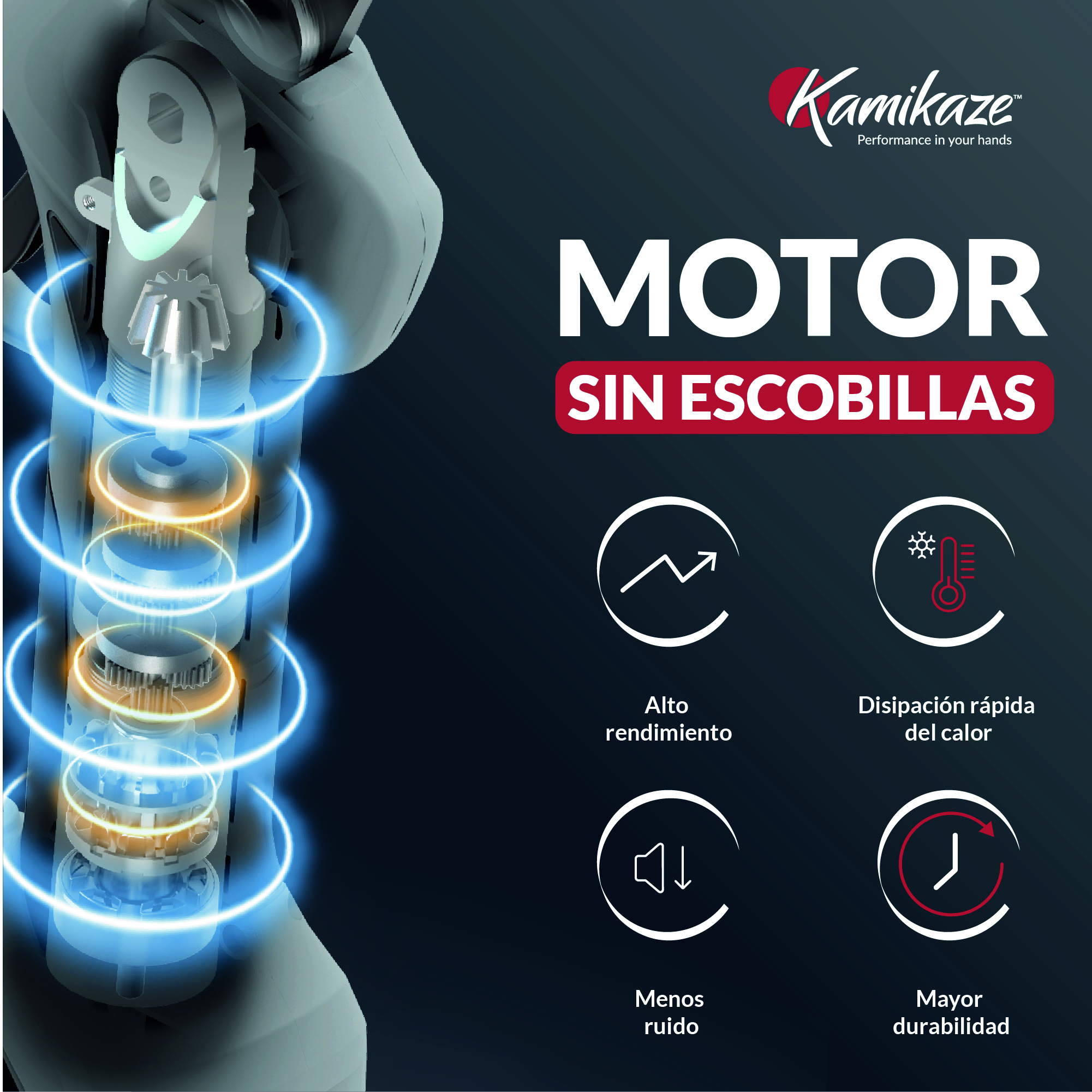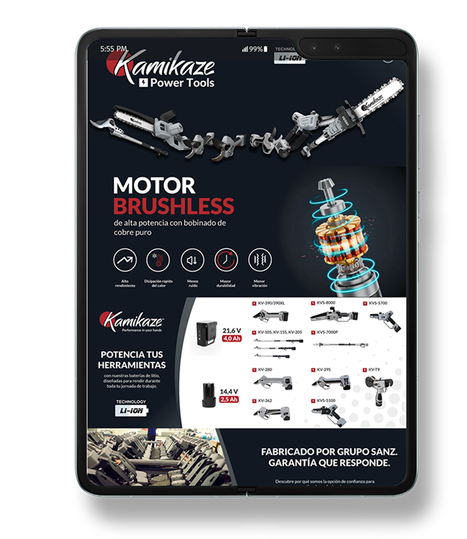 A versatile A+ content template that supports multiple product listings, delivering a consistent and professional brand presentation across Kamikaze’s power tools range