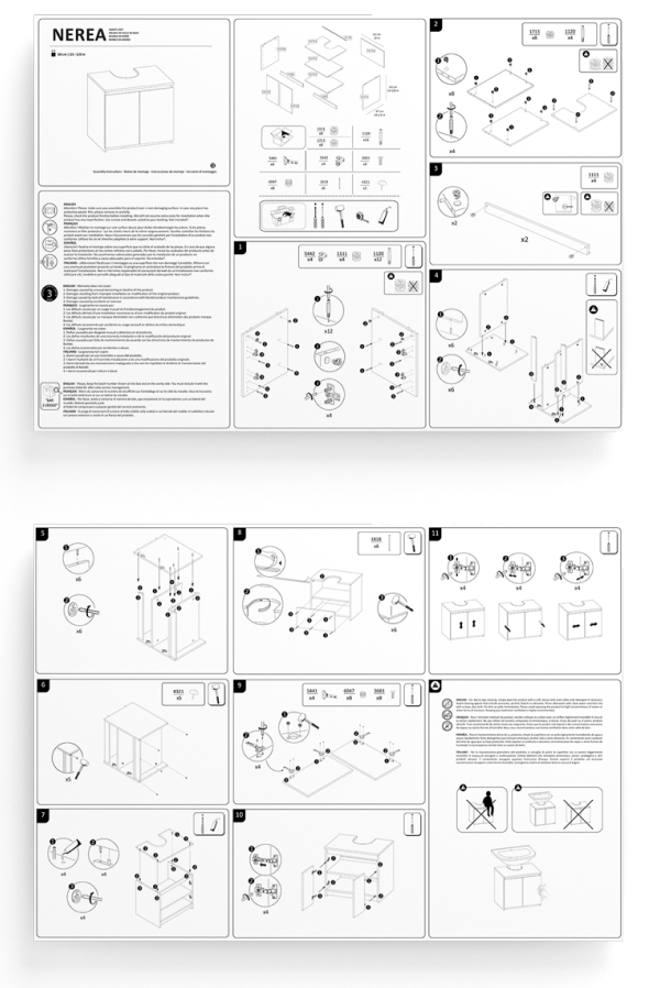 I analysed the product in detail to map out each stage of the assembly, then translated this into a clear, step-by-step visual guide. The layout was carefully designed to maximise clarity while working within tight space limitations, ensuring each step remained easy to follow.