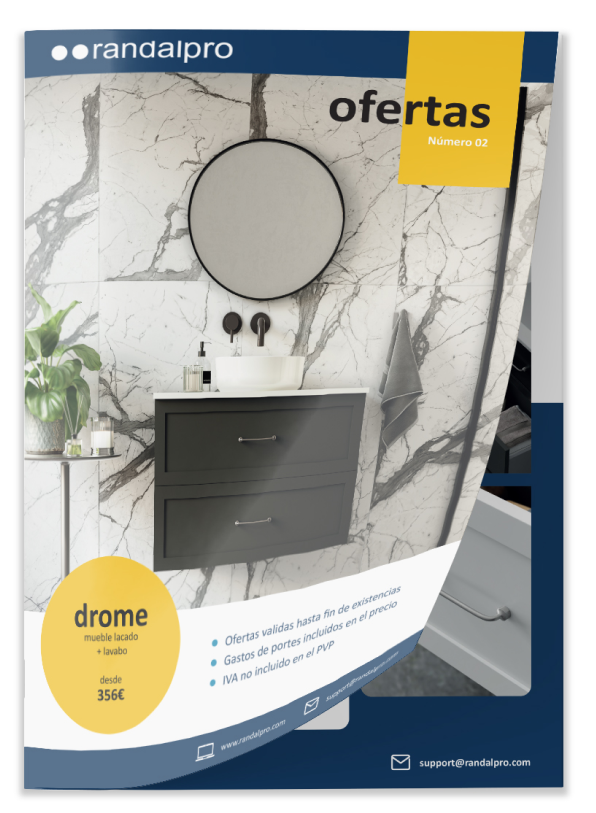 Design an A5 leaflet to showcase two bathroom furniture ranges on special offer, highlighting key product details and encouraging further browsing.